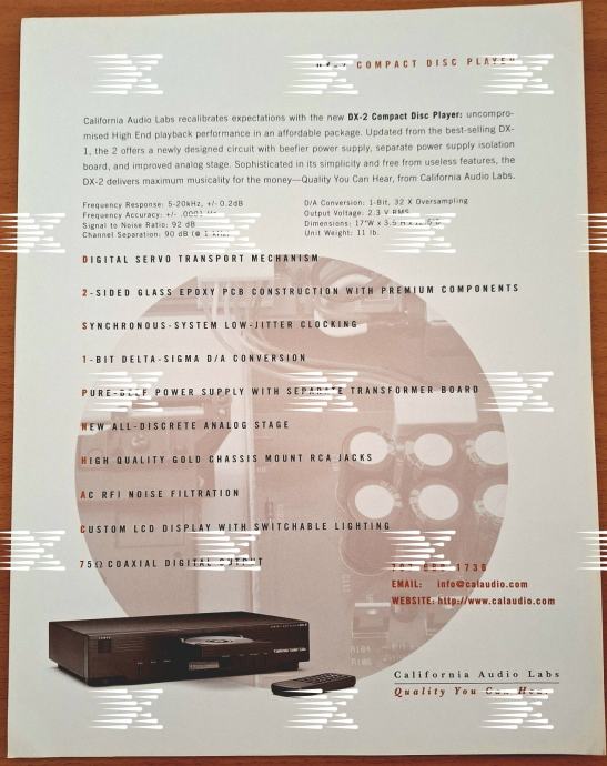 Originalni HI-FI prospekt USA marke California Audio Labs DX-2