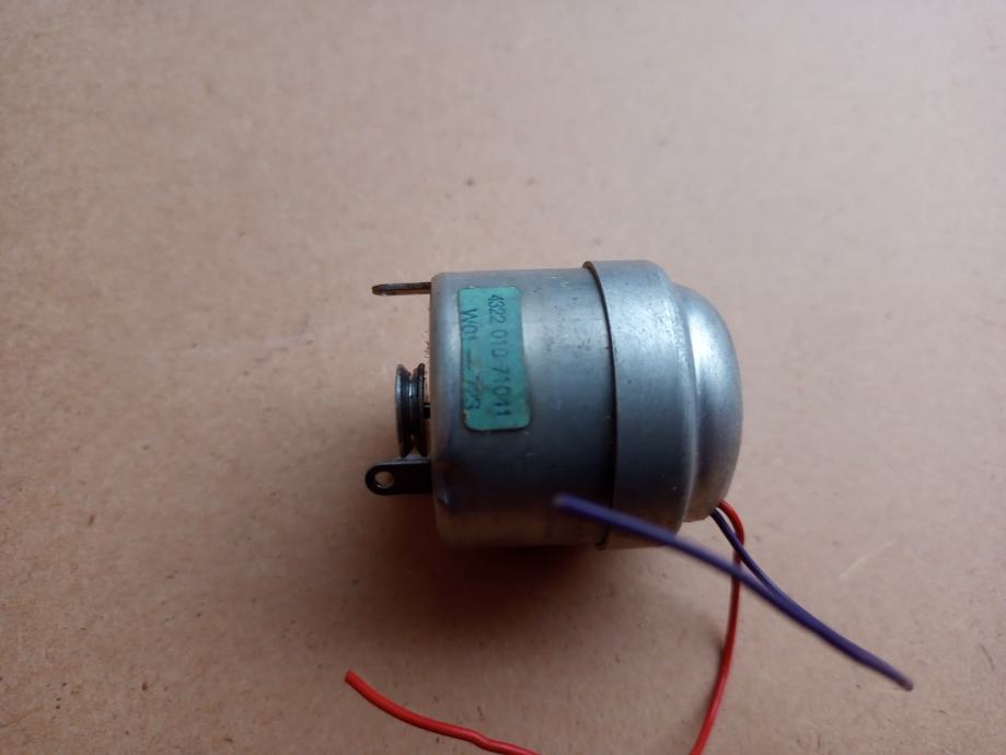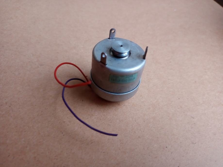 Nisam zabilježio smjer vrtnje, napon pri kojemu je predviđen da radi i naziv uređaja kojemu je pripadao, a vrlo vjerojatno je skinut sa kasetofonske jedinice na kojoj su propali remeni pa ne mogu sa 100% sigurnošću reći da je ispravan. Uobičajeno spremam, odnosno ne bacam u smeće motore koji pri radu proizvode normalan zvuk, tj. vrlo tihi šum. Ako kupac nakon ugradnje u svoj uređaj bude tvrdio da je neispravan, vratiti ću mu novac za predmet i dostavu. Promjer baze kućišta je 35.5 mm, promjer gornjeg dijela kućišta malo manji od 34 mm (33.85), visina kućišta malo veća od 35 mm (35.2), a vanjski promjer koloture 11.5 mm.