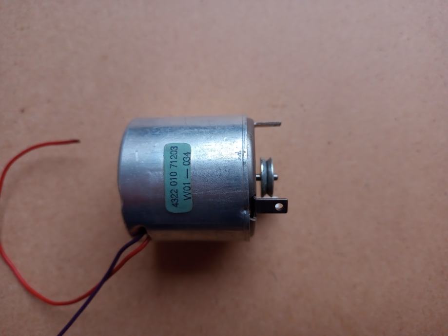 Nisam zabilježio smjer vrtnje, napon pri kojemu je predviđen da radi i naziv uređaja kojemu je pripadao, a vrlo vjerojatno je skinut sa kasetofonske jedinice na kojoj su propali remeni pa ne mogu sa 100% sigurnošću reći da je ispravan. Uobičajeno spremam, odnosno ne bacam u smeće motore koji pri radu proizvode normalan zvuk, tj. vrlo tihi šum. Ako kupac nakon ugradnje u svoj uređaj bude tvrdio da je neispravan, vratiti ću mu novac za predmet i dostavu. Promjer kućišta motora je malo veći oko 35.5 mm (35.35), a visina kućišta oko 33.5 mm