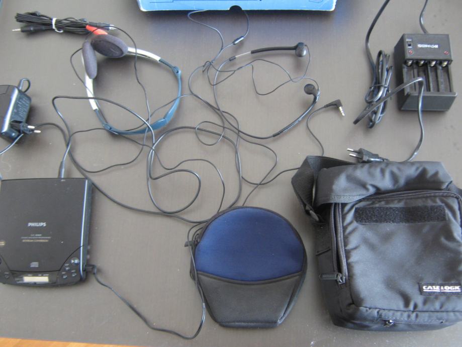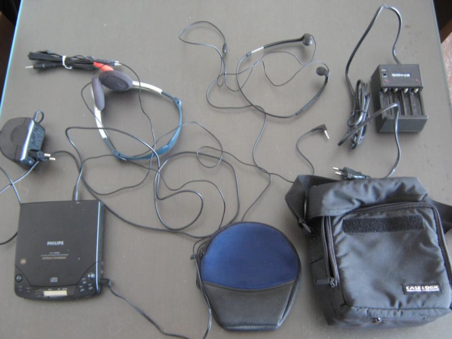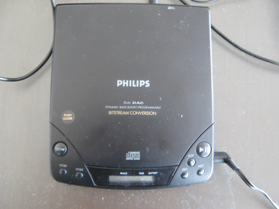 Philips Discman, u odličnom stanju, s originalnim slušalicama (malo oštećene, ali rade odlično) i dodatnim sklopivim Philips slušalicama (malo problematični kontakt) te originalnim kabelom s kojim se može spojiti na HiFi komponente