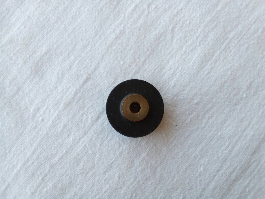 Pripadao je magnetofonu Aiwa TPR-102. Vanjski promjer gume je 22 mm, širina gume 9 mm, unutarnji promjer mjedene cijevi 4 mm, a njena duljina 11 mm. Predmet je čitav, neoštećen, a guma je vrlo elastična i bez pukotina.