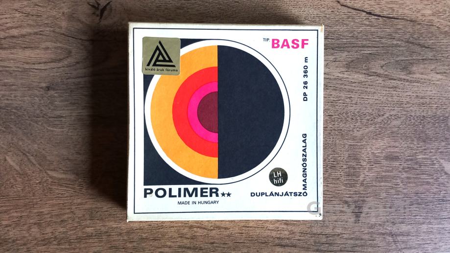 Polimer DP 26 Double Play 360 m vrpca za snimanje na prozirnoj plastičnoj kolutu promjera 13 cm. Proizvedeno u Mađarskoj prema BASF licenci, proizvedeno 1978. godine. Otvorena kutija, vrpca za jedno snimanje, testirana, u vrlo dobrom stanju.