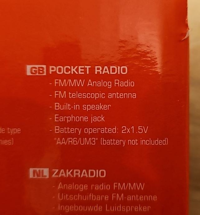Radio džepni, analogni tuner MW/FM