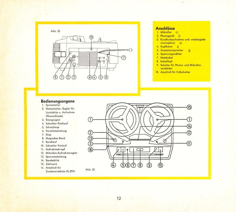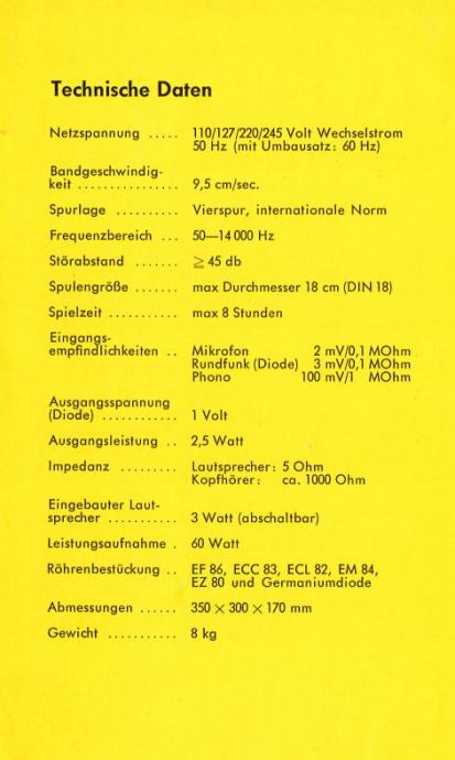 Vierpurgerät-Bandgeschwindigkeit 9,5 cm/sec - Spulen-Durchmesser bis 18cm Spulen.