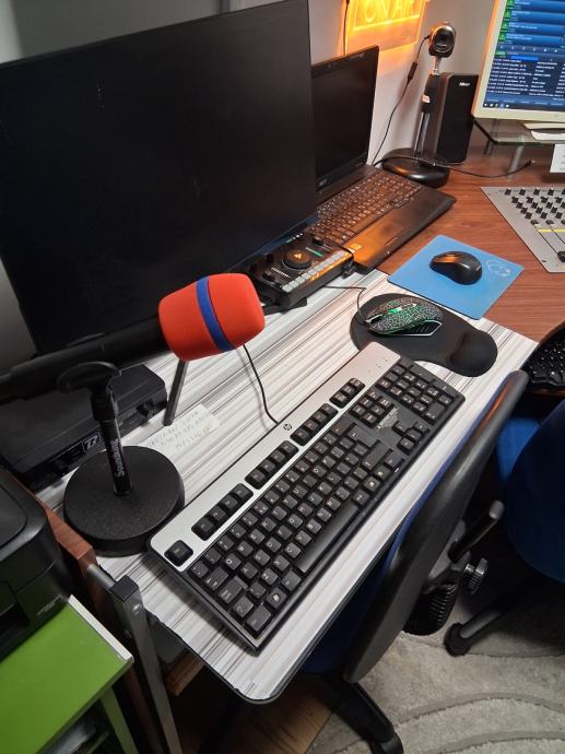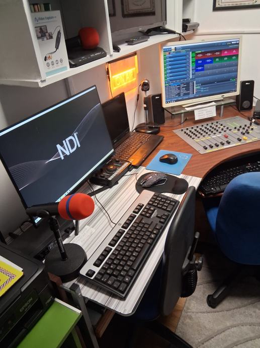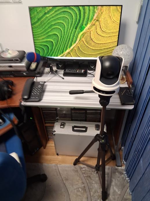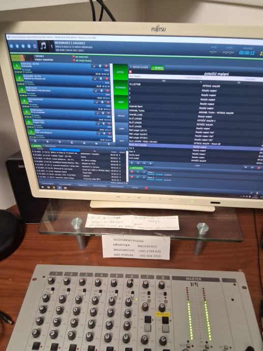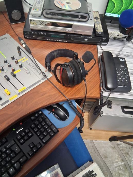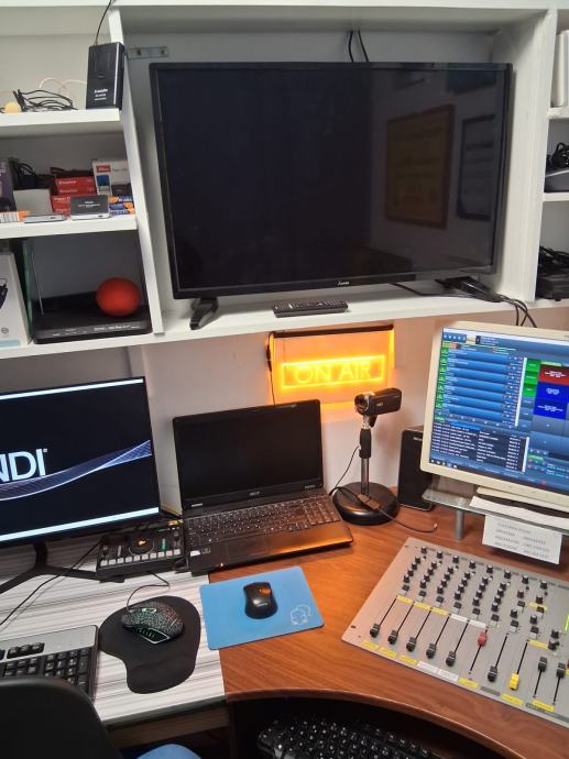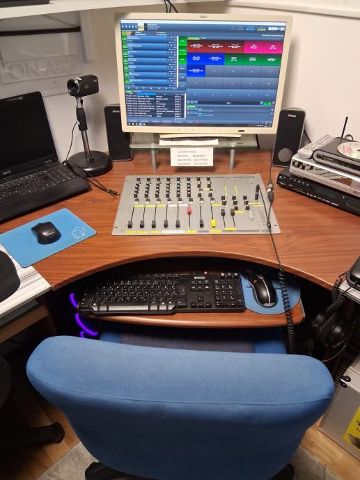 Prodaje se profesionalni radijski komplet za emitiranje radijskog programa,radijski pult u L 170 x 170,radijska mixesta ugrađena u pult D&R, AIRMATE, 5 mikrofonskih ulaza, sa ugrađenim telefonom za pozive slušatelja,060, video s kompjuter Think Centre sa velikim monitorom FUJITSU, studijsku mixesetu sa 16 kanala 8 mikrofonskih ulaza marke YAMAHA, model MG166CX, podržava spajanjena PC putem USB-a , zvučnici u play listi preko 47000 pjesama, sve na automatiki AUTODJ ručno biranje pjesama sa play listu, snimanje reklama i jinglova, kompjuter sa monitorom tipkovmocom mišom i zvučnicima za video strim kupljeno 11. mj.24. telefonski hibrid II za 060 telefone, 1 zidni monitor za emitiranje slikom preko video strima i facebooka,, monitor za pračenje tv programa, video kamera V20C video comference quick start automatska koja se okreče upravljanje sa daljinskim upravljačem pripadajući kablovi, profesionalne naglavne slušalice sa mikrofonom za vođenje radijskog programa, naglavni mikrofon i mikrofon bubica sa baznom stanicom za vođenje programa pred kamerama, bazna stanica sa dva bežična mikrofona rade istovremeno, ON AIR koji svjetli na zidu kad su uključeni mikrofoni.Uz svu tehniku dobijete komplet kablove.Radio stanica je u funkciji i emitira program 24 sata.Prodaje se u kompletu zbog odlaska vođenja programa na TV.