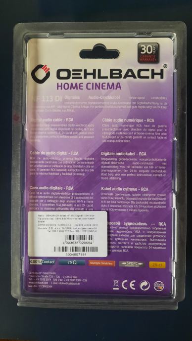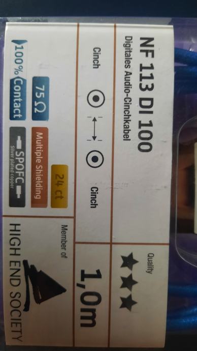 Neotpakirani high end audio kabel s pozlaćenim (24 ct) cinch-evima.