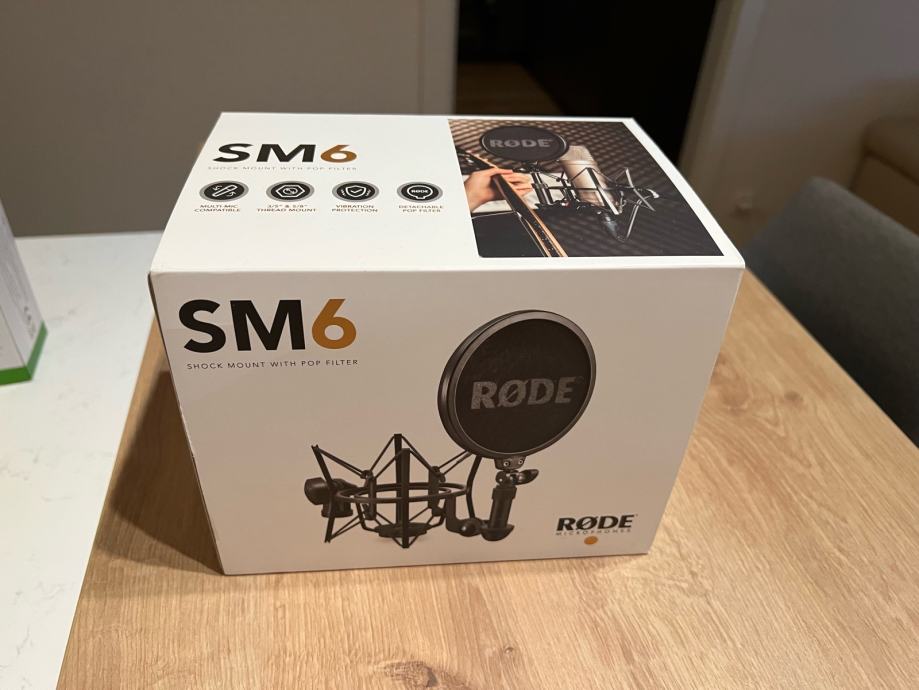 Novi Rode SM6 shock mount s pop filterom. Nekoristen, u originalnoj ambalazi.