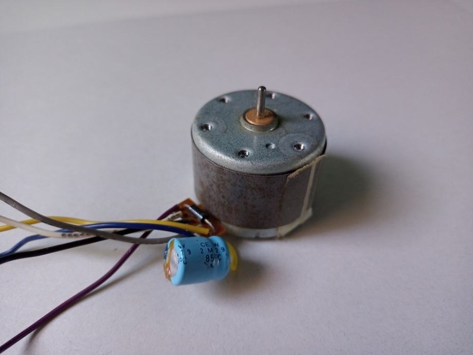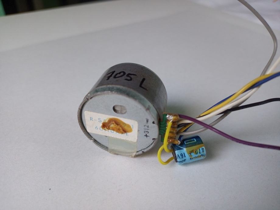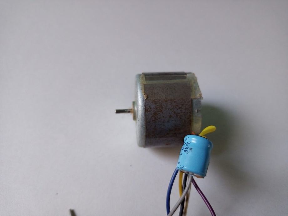 Nisam zabilježio napon pri kojemu je predviđen da radi i smjer vrtnje. Pripadao je kasetofonu Sanyo MW 705L, na kojemu su propali remeni pa ne mogu sa 100% sigurnošću reći da je ispravan. Uobičajeno spremam, odnosno ne bacam u smeće motore koji pri radu proizvode normalan zvuk, tj. tihi šum. Ako kupac nakon ugradnje u svoj uređaj bude tvrdio da je neispravan, vratiti ću mu novac za predmet i dostavu. Promjer oklopa je 33 mm, visina oklopa malo manja od 26 mm, promjer osovine 2 mm, duljina osovine 8 mm, a razmak središta rupa za vijke 26 mm.