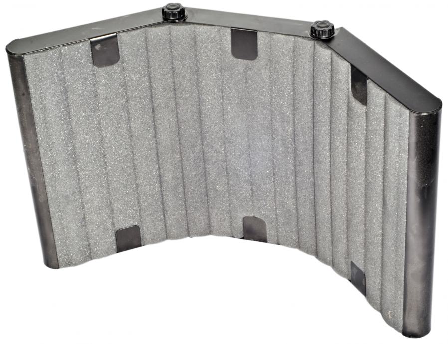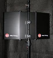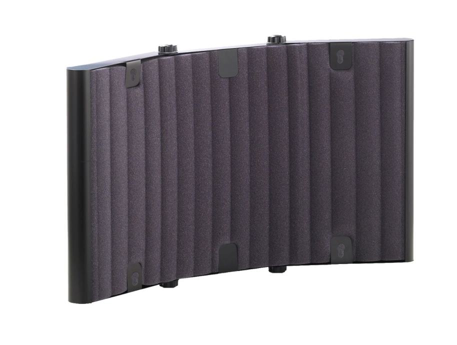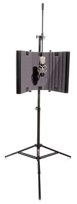 The Mic Thing can be mounted on just about any microphone, drum, or speaker stand up to 1 in. (25mm) in diameter. The Mic Thing’s 2 winged panels can also be adjusted to create anything from a flat planar absorber to a tight semi circle enclosing the microphone. This way, the amount of separation and absorption can be easily be manipulated to suit requirements.