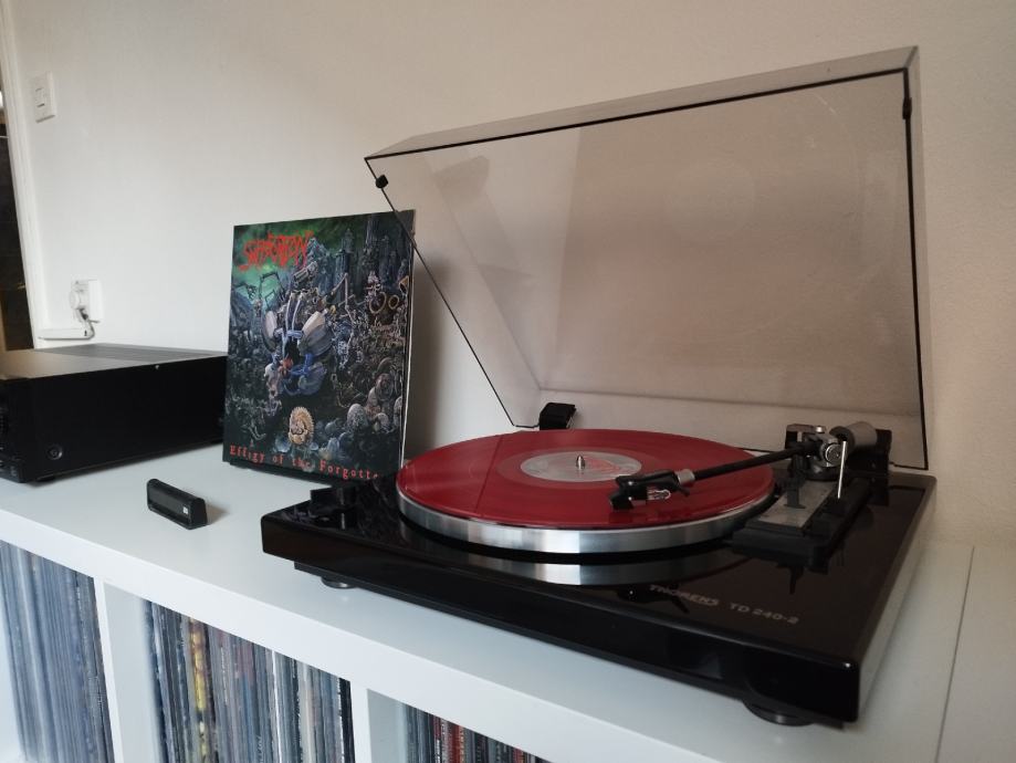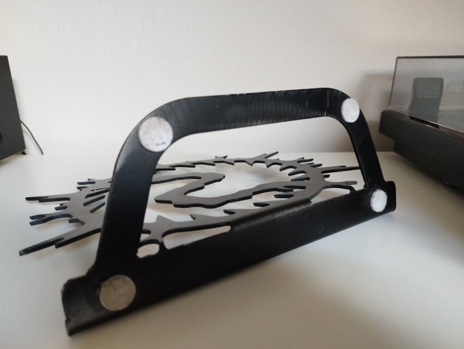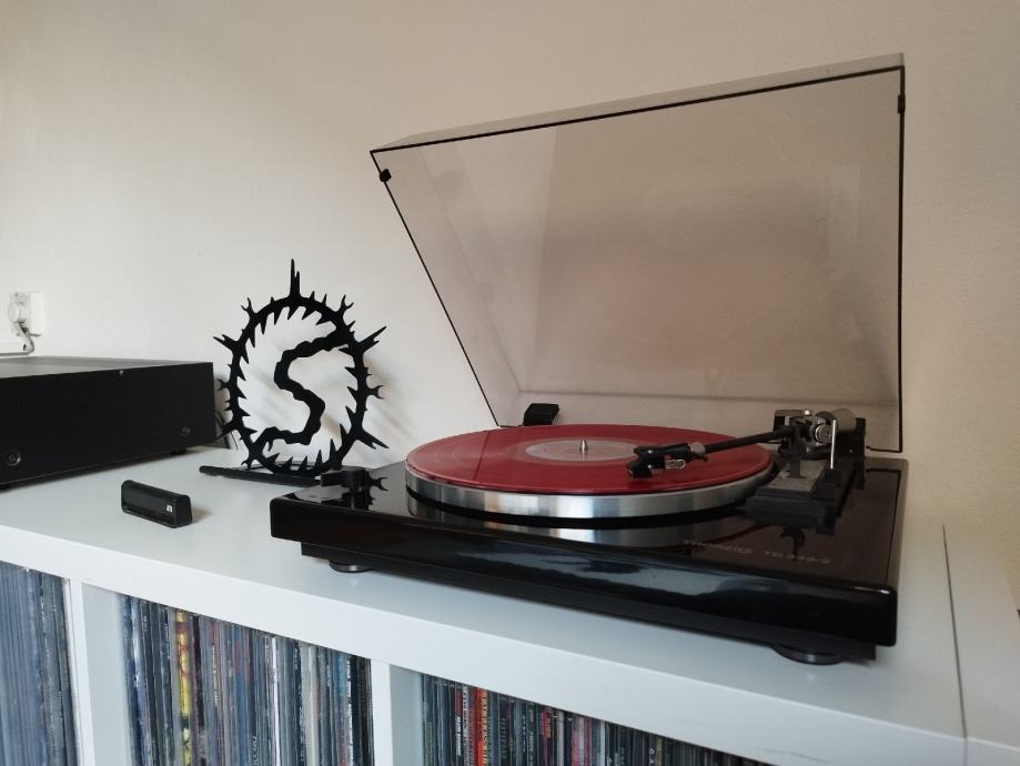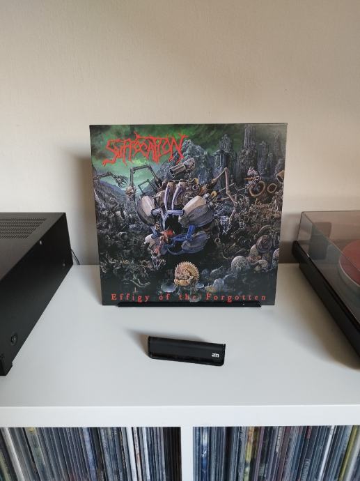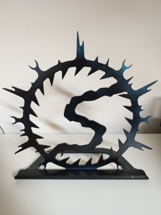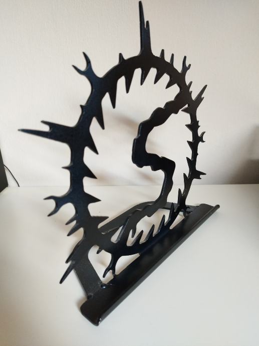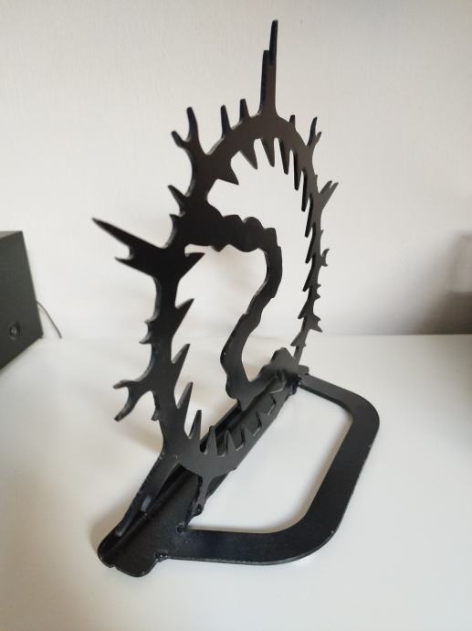 Stalak za omote gramofonskih ploča. Logo death metal banda Suffocation. UNIKAT, izrađen u Švedskoj od strane majstora kovača. Željezo, protuklizne naljepnice.