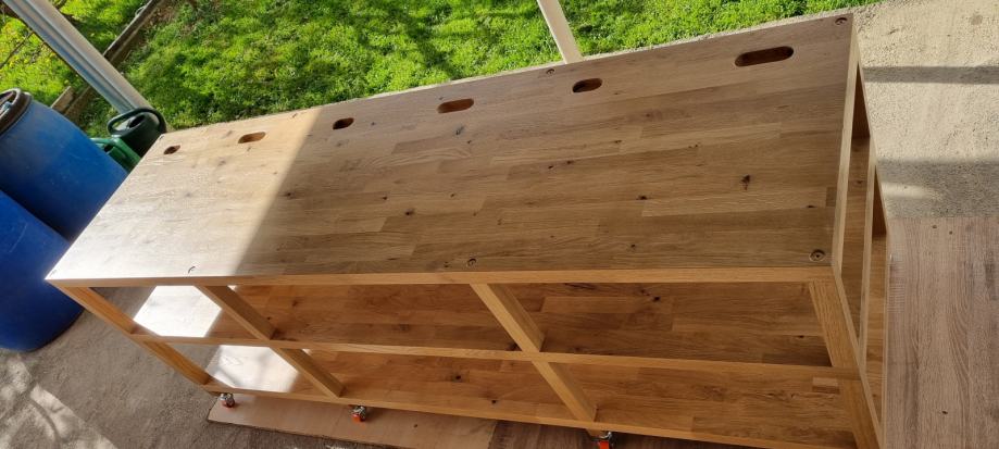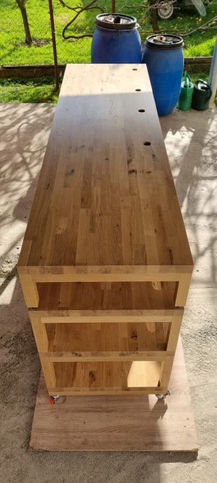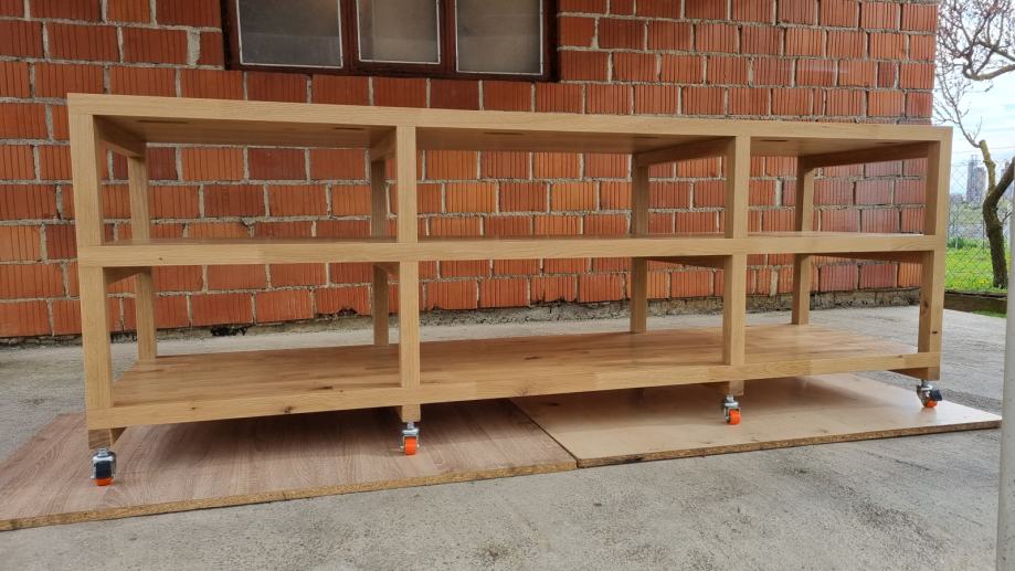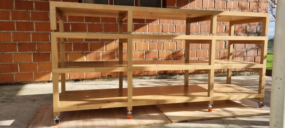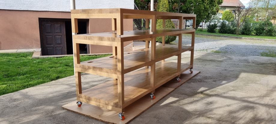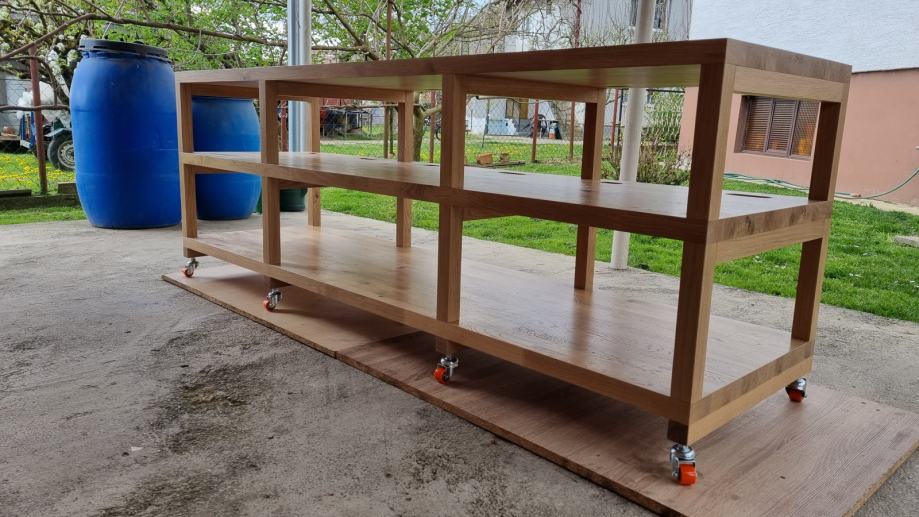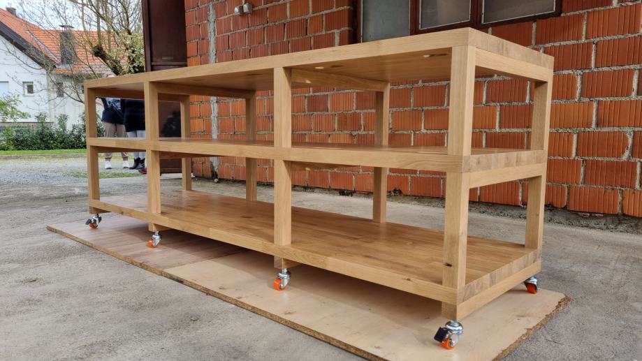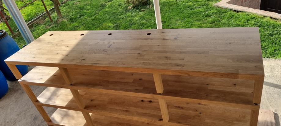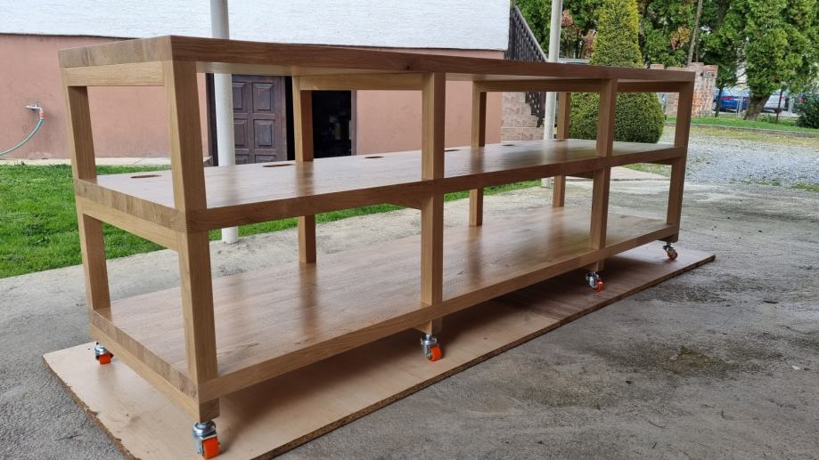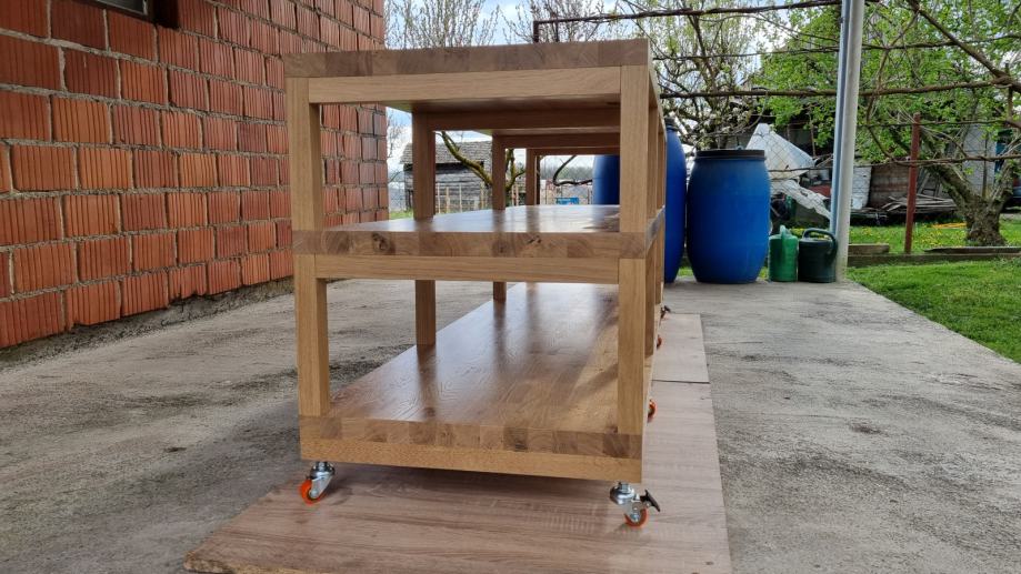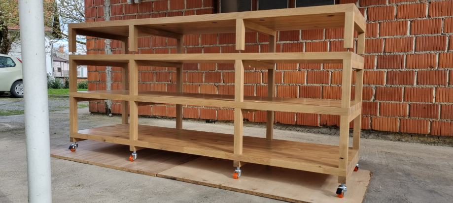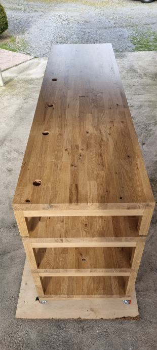 Nova Hi-fi polica/stalak, puno masivno drvo (Lamele rustikalnog hrasta),, debljina polica 40mm.