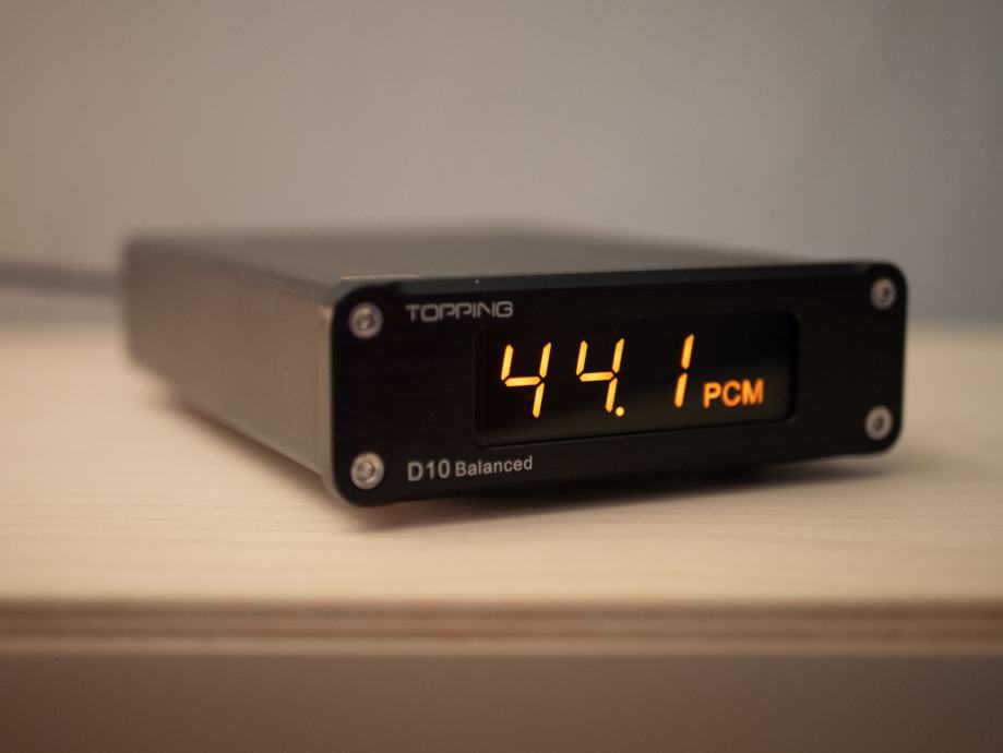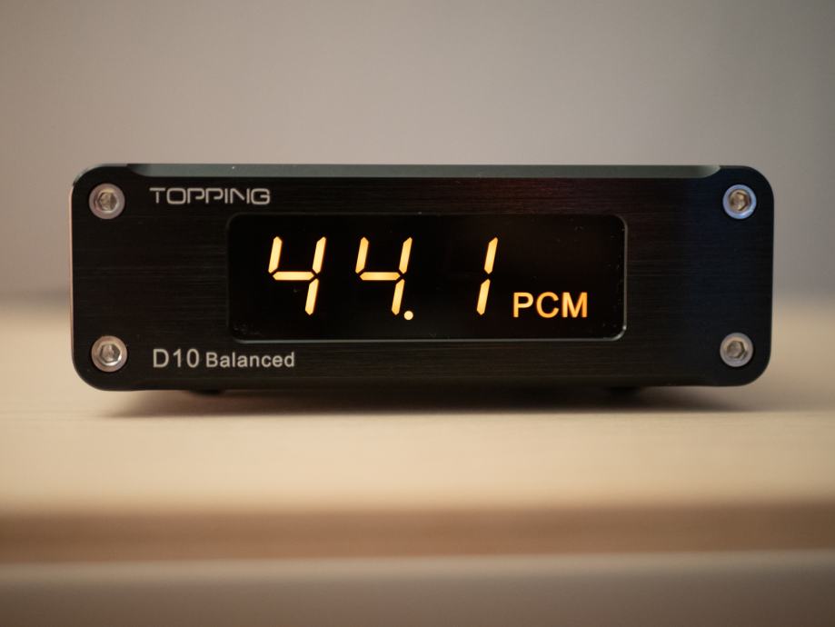 Topping D10b – USB digitalno analogni konverter s balansiranim izlazima (TRS). Dekodiranje i konverzija zapisa DSD64-DSD256. PCM-44.1 do 384kHz. Funkcije konverzije iz USB 2.0 u digitalni SPDIF (coax i/ili toslink) izlaz. Harmonička izobličenja manja od 0.00012% na 1kHz. Osnovan na ESS ES9038Q2M.
