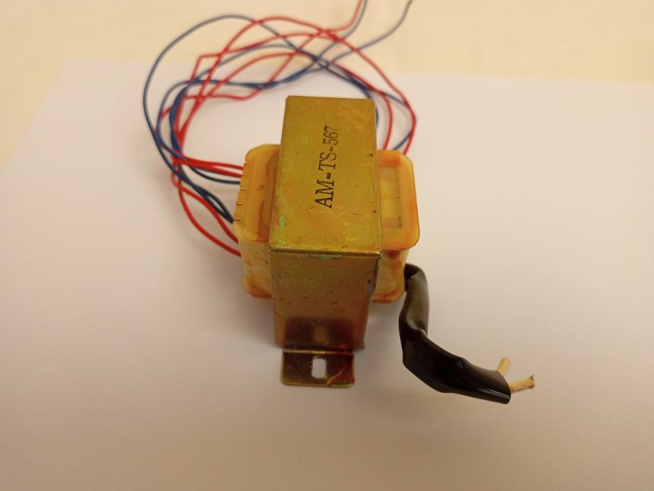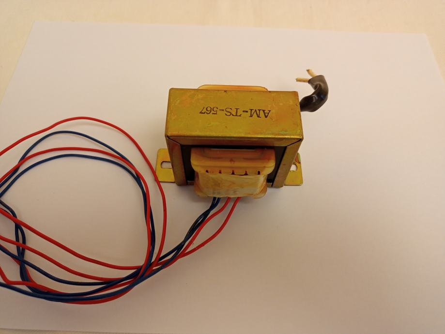 Prodajem ispravan transformator, koji je pripadao glazbenom centru Disco star, čija je ukupna potrošnja bila 40 W. Priključen na mrežu napona 240 Volta, daje jedan sekundar napona 14.2 Volta, a drugi napona 26.2 V izmjenične struje. Masa transformatora je 630 grama, a gabarit 63x53x54 mm.