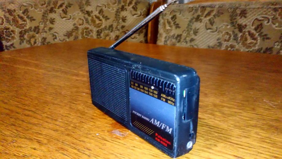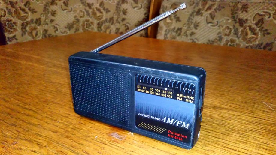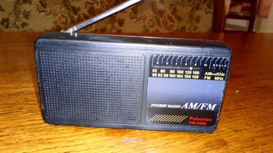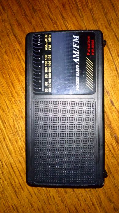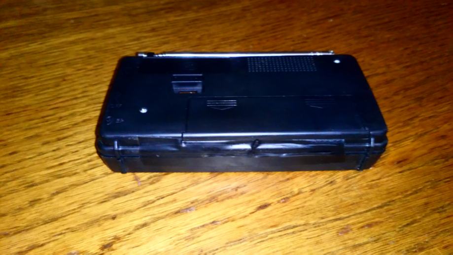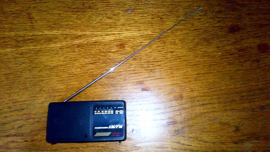Mali zgodni tranzistorcic. Stane u dzep. Dimenzije 13.5x7x2.5cm. Svira ali nekada ima jako sistaanje, pa ga treba ponovno upaliti i ugasiti.
