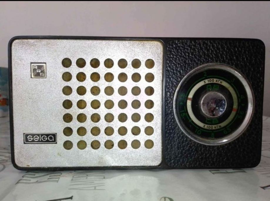 Sovjetski radio prijemnik proizveden 1974. Ispravan, zvuk malo izblijedio. Odličan za kolekcionare. Hvata dugi i srednji val, navečer se čuje dosta postaja. Cijena 10 eura, može i po dogovoru.