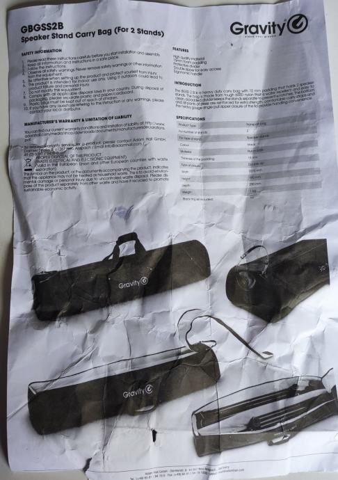 Gravity torba i dva stalka za zvučnike..