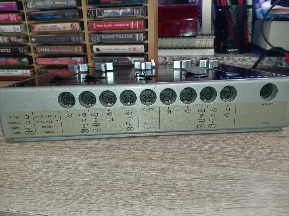 Prodajem lijepu audio stereo mixetu Uher Stereo Mix 500 , 1978 , din priključci za phono , tape , tuner , mikrofone...radi na bateriju od 9v , ili na din ispravljač ,5 kanal mono ili 2 kanal stereo . Lijepo očuvana . Dimenzije 30x22x6 cm . tel 099 4722848