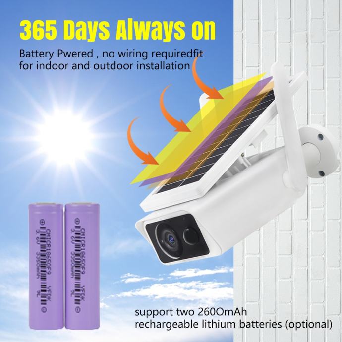 Solarna kamera za video nadzor podržava standardne 18650 punjive baterije. Također dolazi s mobilnom aplikacijom koja olakšava pregledavanje videozapisa, upozorava kretnje na posjedu i dvosmjernu audio komunikaciju u stvarnom vremenu pomoću vašeg pametnog telefona.