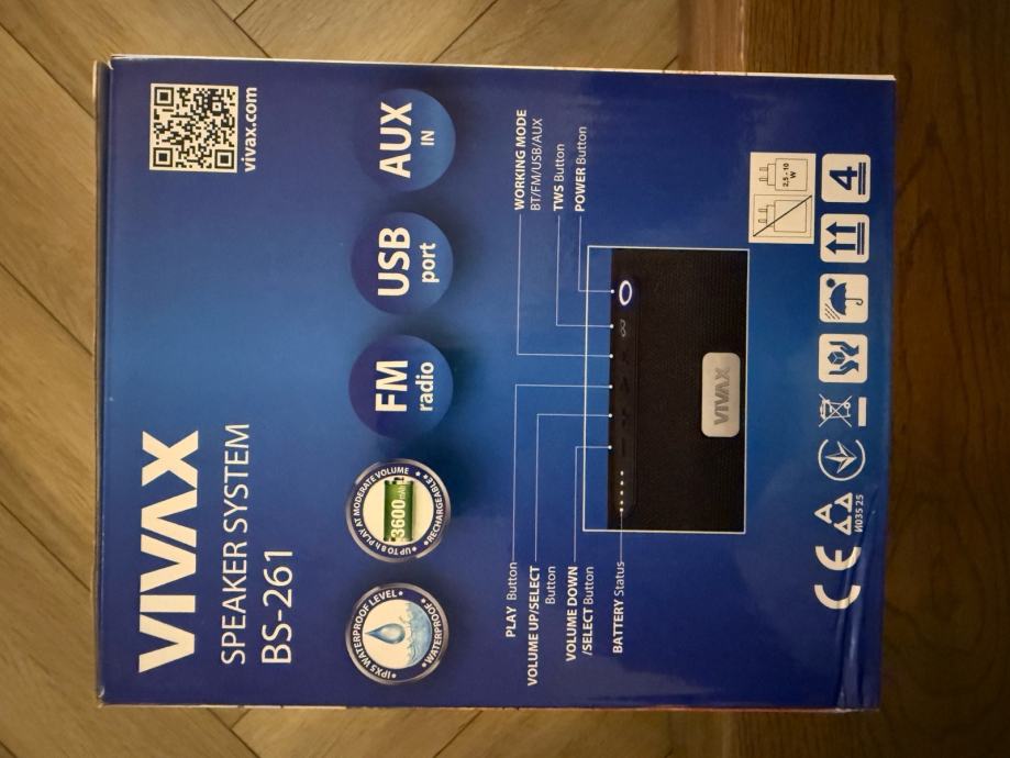 VIVAX Bluetooth zvučnik BS-261 odlikuje s funkcijom TWS. Uz tu funkciju mogu se jednostavnim pritiskom na TWS tipku povezati dva ista uređaja. Na taj način se može uživati u još jačem zvuku te boljem stereo efektu.