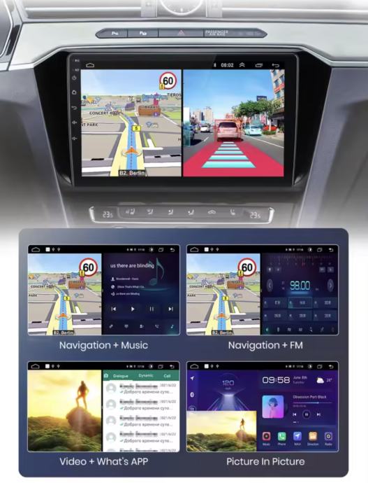 GPS + Radio+RDS + Bluetooth + A2DP + TELEFONSKI IMENIK + Punjenje mobitela preko radija + USB + WiFi + AUX + Mirror Link + MAPE cijele Europe + HANDSFREE