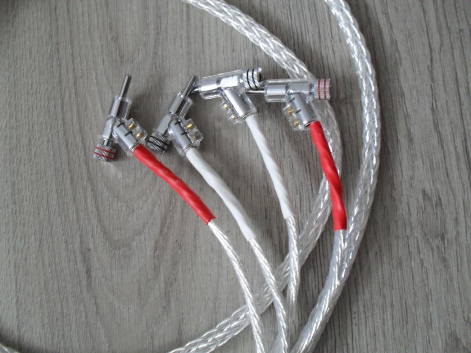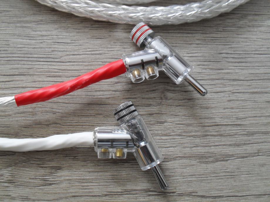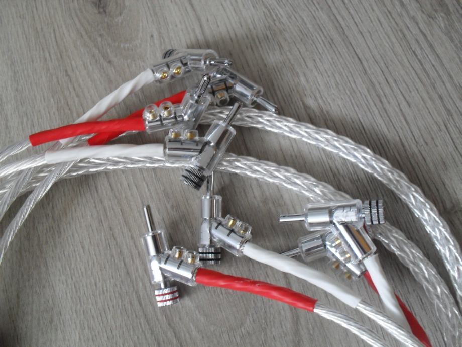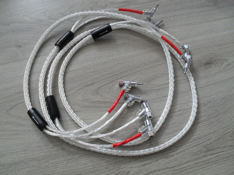 HI-End OCC Silver Plated zvučnički kablovi, terminirani Rhodium Plated Closed Screw Lock bananama. Kablovi su novi, neusvirani, dužina 1,5 m.