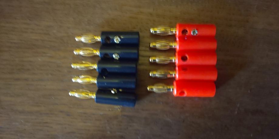 10x pozlaćeni banana kabelski utikači 4 mm (5 x crvenih i 5 x crnih)