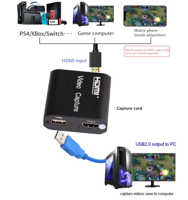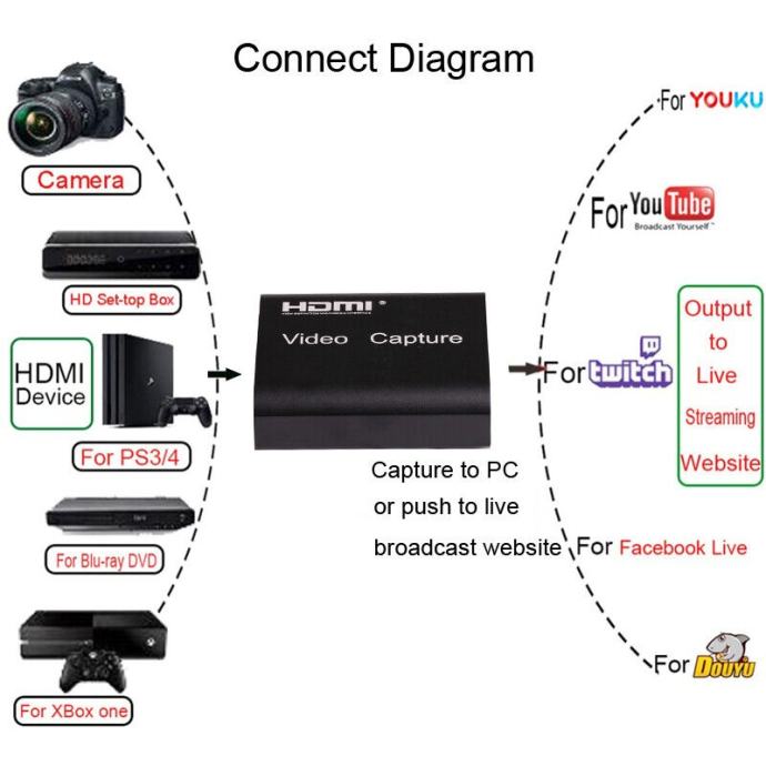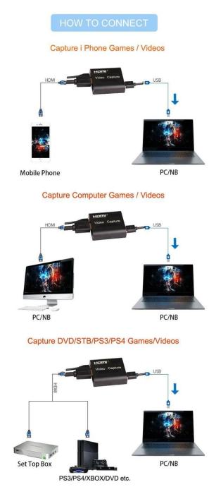 【HDMI snimanje igara】 Temeljeno na brzoj USB 3.0 tehnologiji, može uhvatiti jedan signalni kanal HD HDMI video signala. Prikladno za uređaje s HDMI izlazom, kao što su Blu-ray Player, PS3/4, Xbox one, Wii U, Nintendo Switch, DVD, kamera, ZOSI sigurnosna kamera, DSLR i Set Top Box itd.