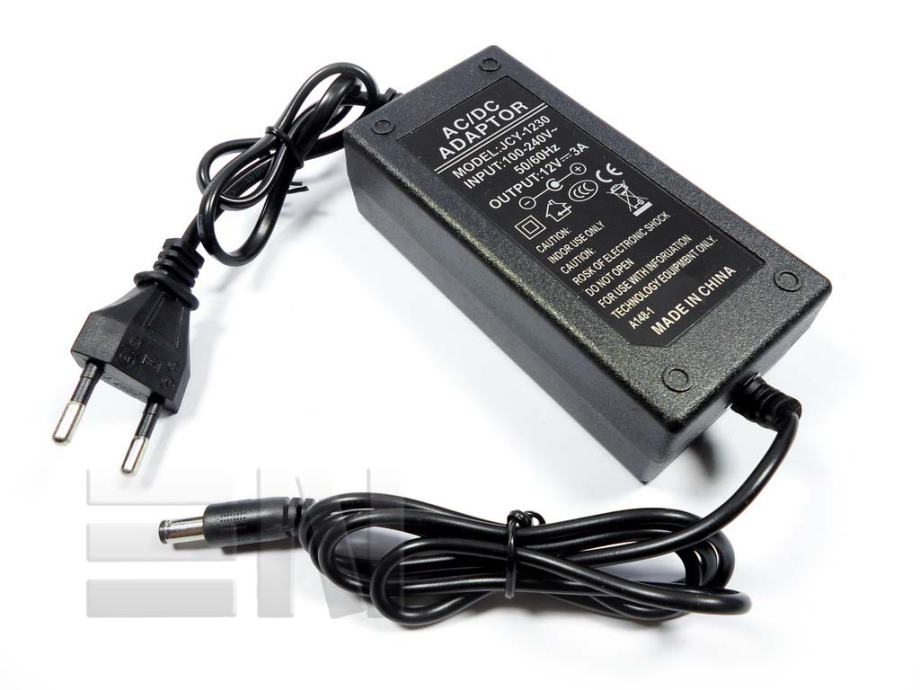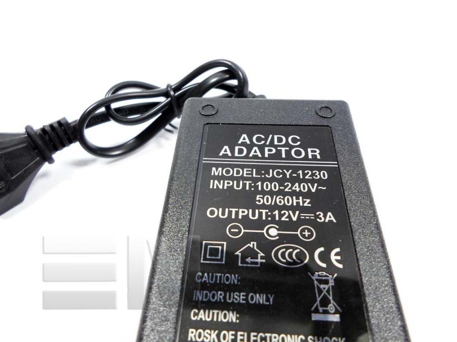 AC/DC Adapter 12V 3A 36w napajanje namjenjeno za LED trake, nadzorne kamere i druge slične proizvode, s izlazom DC 12 V 3 A sa utikačem i izlazom s konektorom 5,5 - 2,5 mm. Napomena: Tehnički podaci: - Ulaz: AC 100-240V 50-60Hz , Izlaz: DC12V 3A -