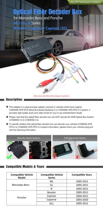 Adapter za dekodiranje optičkih kablova za Mercedes, za modele ML, GL, R, E, CLS, SLK i Porsche 911, BOXTER i CAYMAN