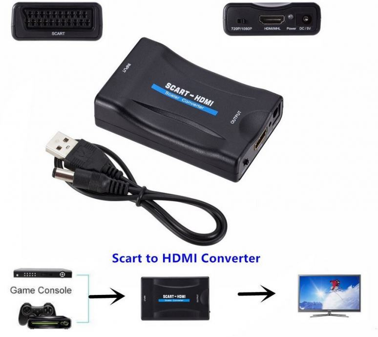 - pretvara SCART signal u HDMI za priključivanje raznih uređaja koji mogu primati takav signal.