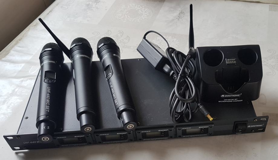U paketu su baza 19" s dvije antene, 3 bežična mikrofona i dupli punjač.