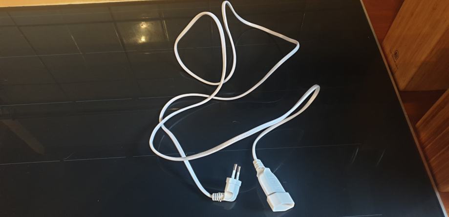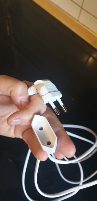 Bijeli produžni naponski (strujni) kabel dužine 1.85m sa "L" završetkom radi lakše prilagodbe.