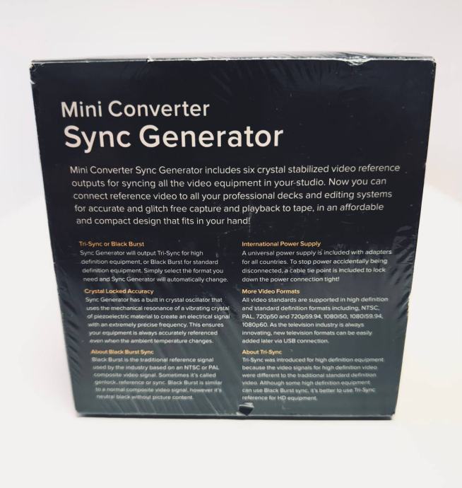 Mini Converter Sync Generator je potpuno nov, na sebi i dalje ima tvornički postavljenu zaštitnu foliju, sa svim dodacima u kutiji. te sve što vam treba za rad se nalazi u kutiji.