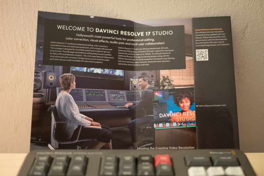 Blackmagic DaVinci Resolve Studio (software + keyboard controler)