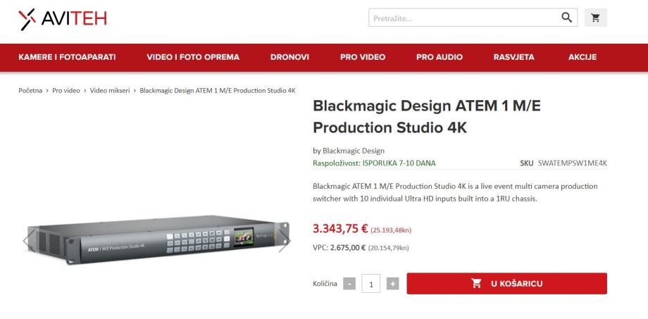 Blackmagic ATEM 1 M/E Production Studio 4K is a live event multi camera production switcher with 10 individual Ultra HD inputs built into a 1RU chassis.