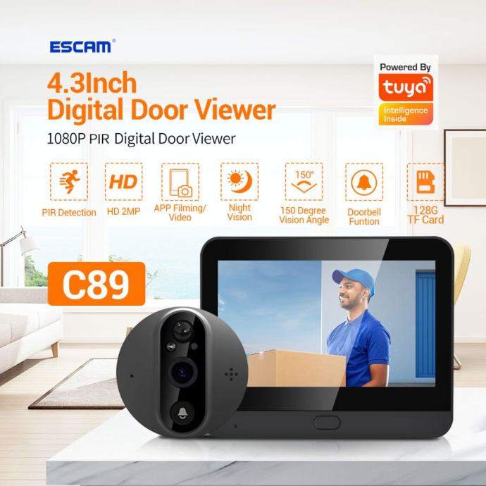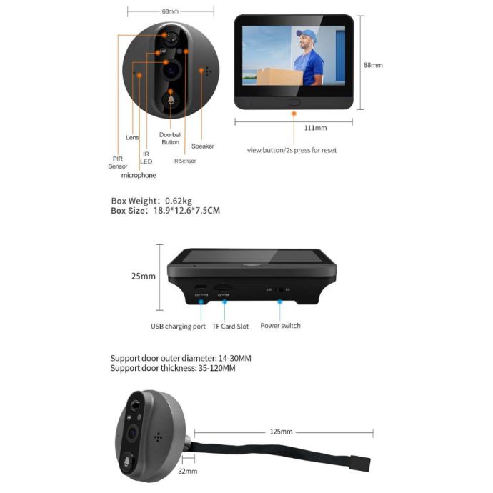 Naš uređaj dolazi s LCD zaslonom visoke razlučivosti od 4,3 inča, koji omogućuje jasne i oštre slike, pružajući vam detaljan pregled svega što se događa ispred vaših vrata.