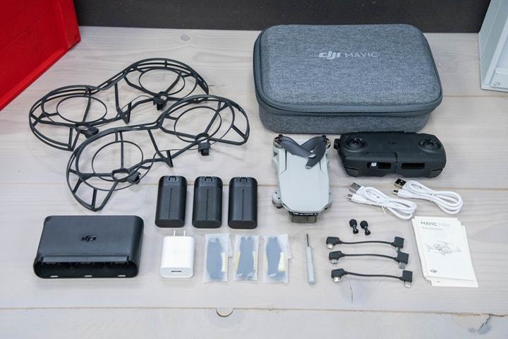 3 baterije +punjač, štitnikom za propelere, zamjenskim propelerima, kablom za povezivanje mobitela 3x (Micro USB, USB Type C, USB Lightning)