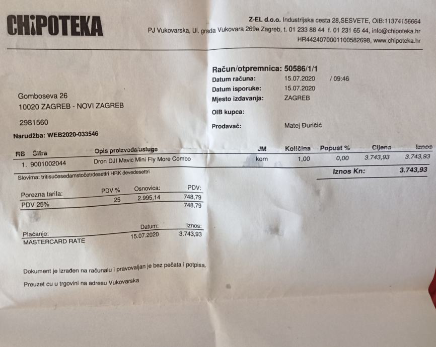 Dron je u izuzetno očuvanom stanju. Kupljen je 15.07. 2020. te garancija traje do 15.07.2022.