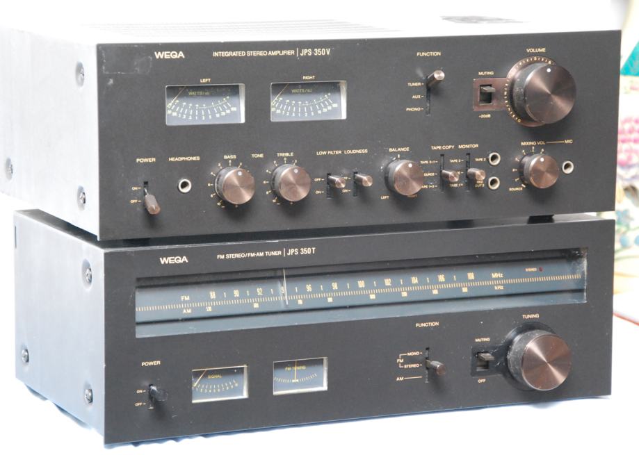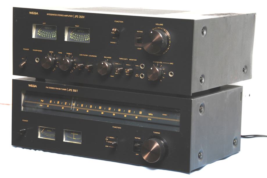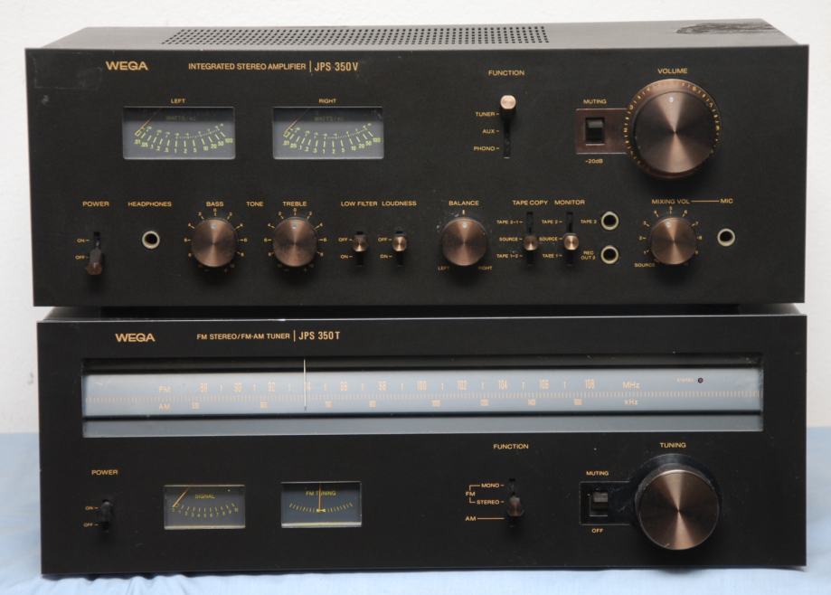 Prodajem glazbenu liniju marke Wega-Sony, model JPS 350 V (pojačalo) i JPS 350 T (tuner) . Pojačalo je muzičke snage 2 x 55 W a tuner je analogni, frekventnog područja od 88 - 108 MHz. Riječ je o vrhunskoj klasi audio uređaja iz 80-tih godina. U komponentama nema plastike, primjerice pojačalo je teško 9,3 kg. Posebnost linije su tzv. VU - metri koji daju klasičan izgled i asocijaciju na stara vremna kada uređaji nisu trajali 2 godine što je danas slučaj sa "kinezima".