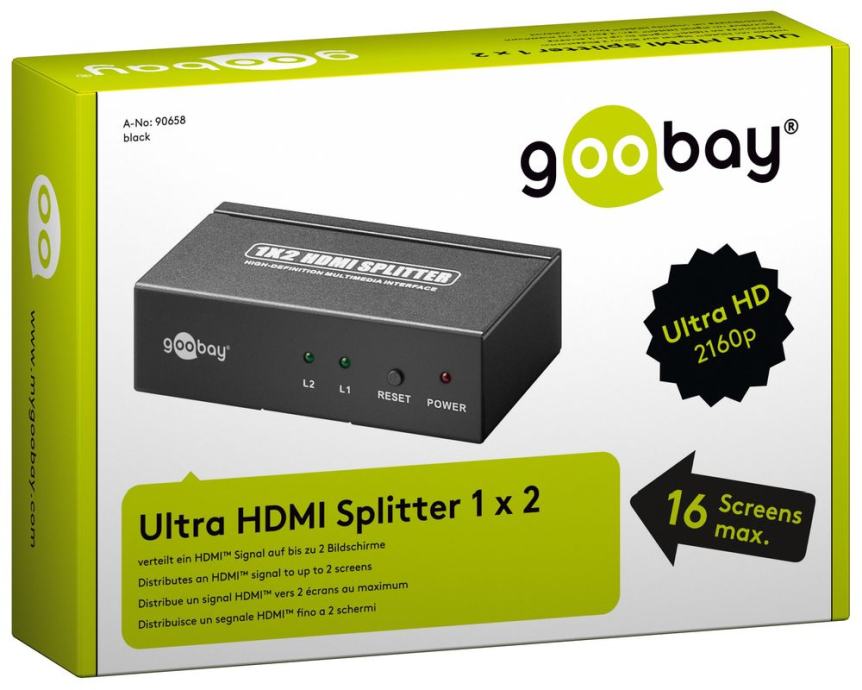 Goobay 90658 Ultra HDMI Splitter 1 x 2 Distribution Signal to 2 Screen