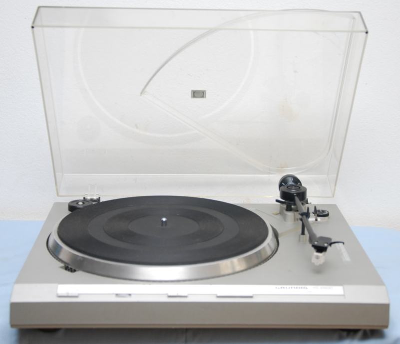 Prodajem gramofon njemačke proizvodnje marke Grundig model PS 2500, tehnički potpuno ispravan. Na gramofonu se nalaze novi remen i nova zvučnica sa iglom marke AT 3600 L. Mehanika gramofona je automatska što znači da se nakon odsvirane ploče, ručica vraća u polazni položaj i motor se isključuje.