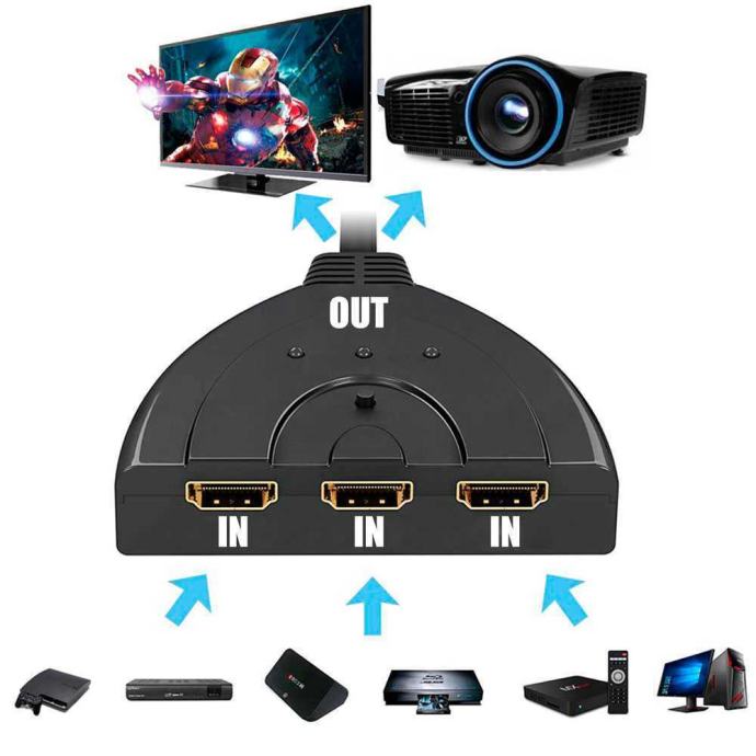 HDMI Splitter Switch 3 porta 4K Ultra 1080P Full HD 3 in 1 Out PS4-PS5 Xbox itd.