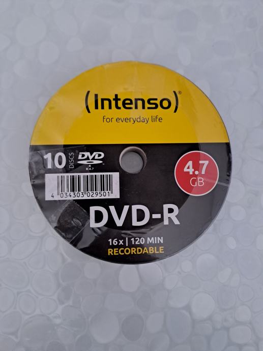 Prodajem novi set od 10 praznih DVD-R medija marke Intenso, idealnih za pohranu podataka, videa, glazbe i arhiviranje.