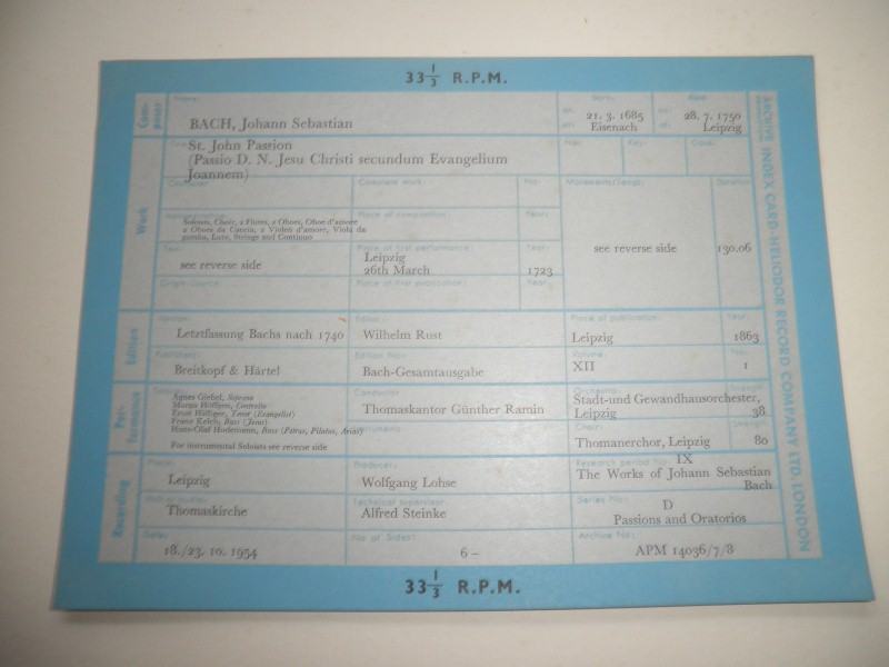 J.S.BACH ALBUM APM 14036, 14037, 14038 ARHIV PRODUKTION IZ 1954 GODINE