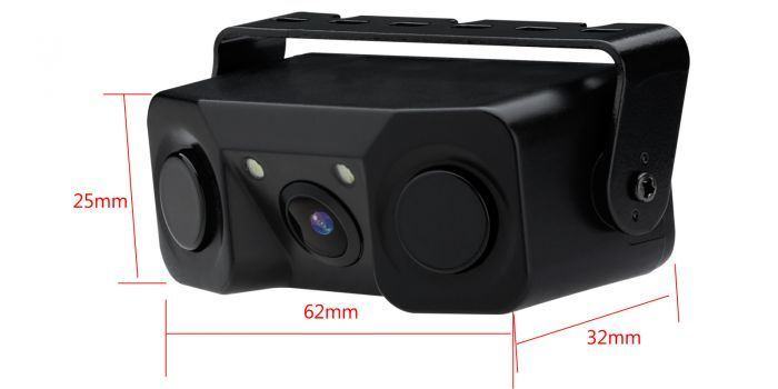 Univerzalna kamera za pomoć pri parkiranju. Moguća ugradnja na sve auto multimedije. U KUČIŠTU SU I 2 SENZORA SA ZVUČNIM SIGNALOM preko buzzera i prikazom na multimediji skupa s slikom kamere.