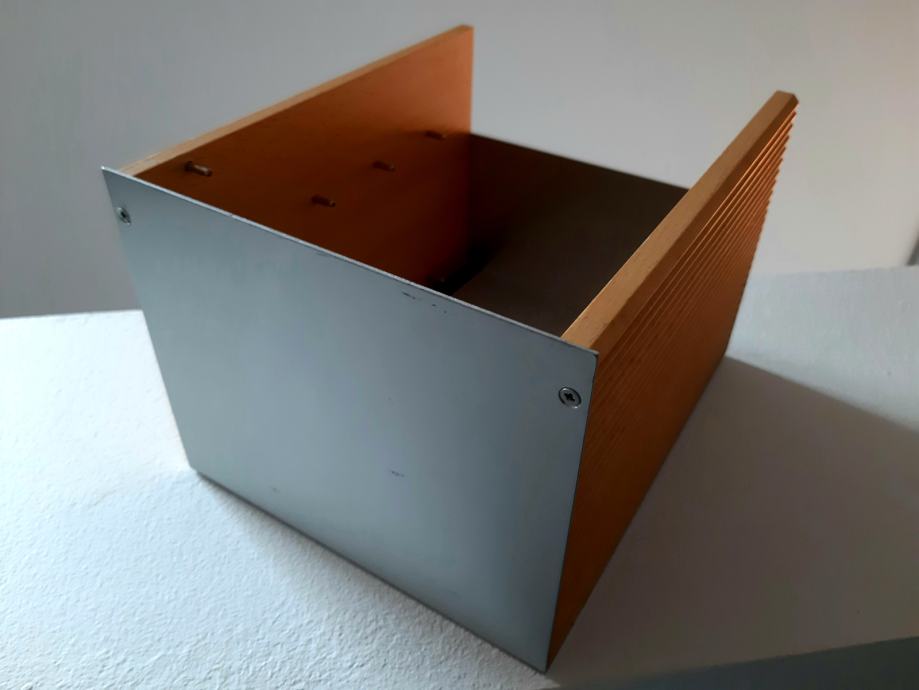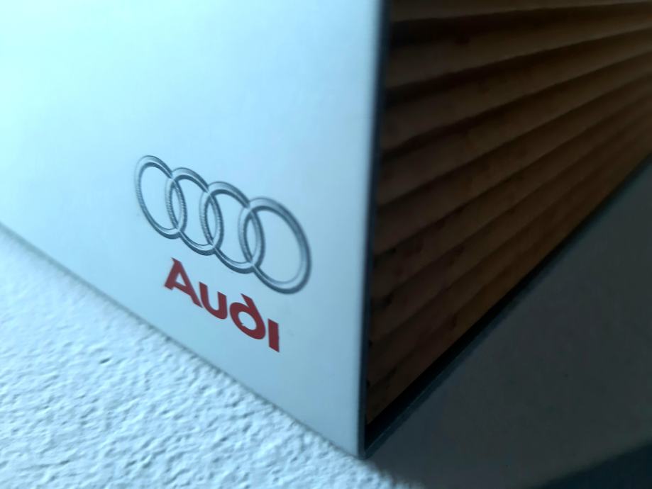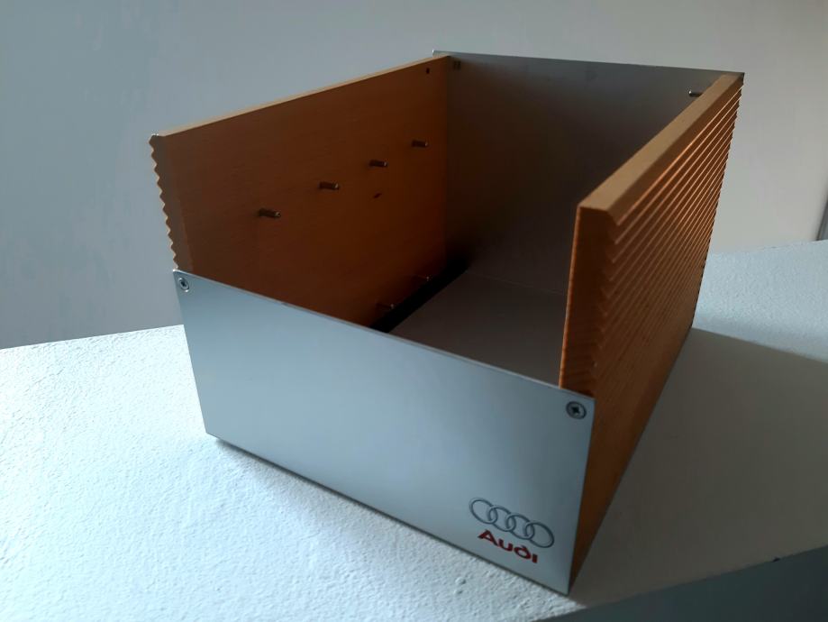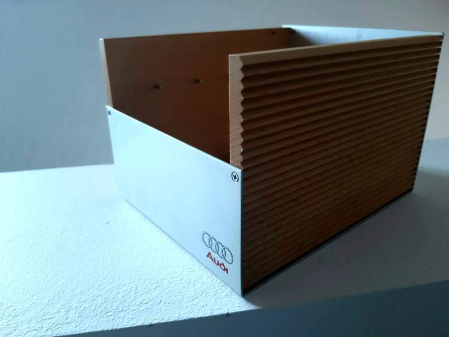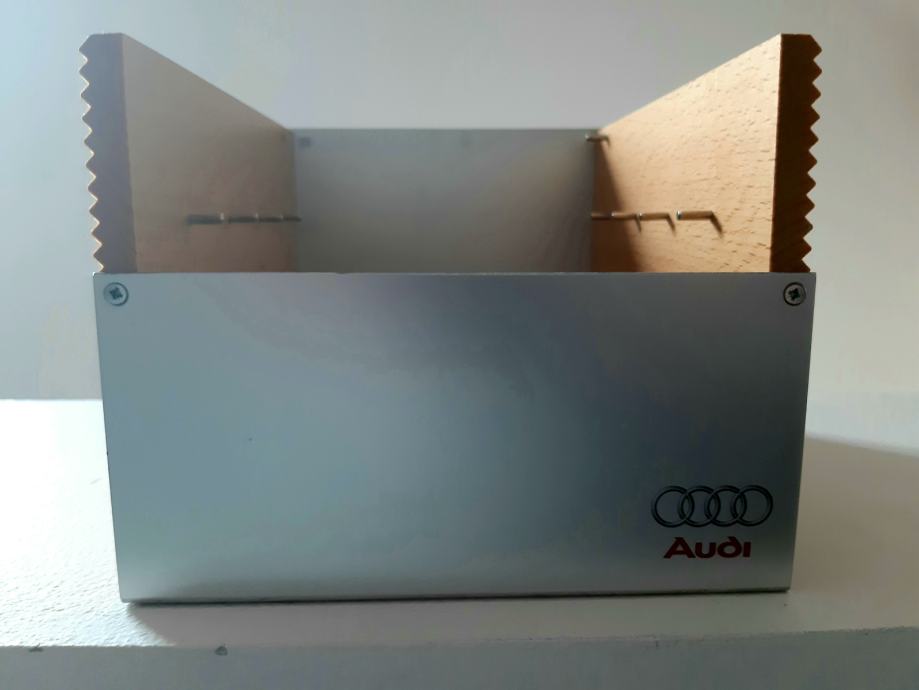 Kutija, stalak za CD-ove / DVD-ove sa znakom AUDI (elox aluminij-drvo).