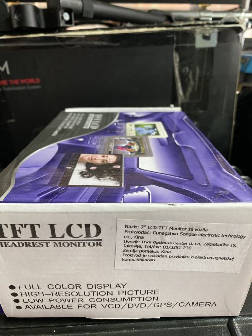 Potpuno novi LCD- 7 " monitor pogodan za ugradnju u auto.Kutija i pribor- imam 2 ista pa ukoliko netko zeli ugraditi u naslon.