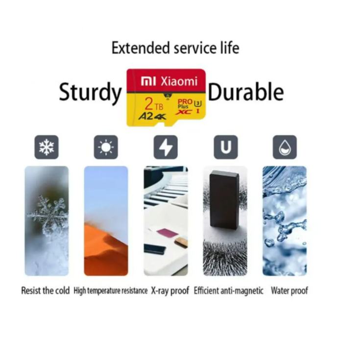Vaša memorijska kartica je uvijek spremna za akciju. XIAOMI 2TB SD kartica je otporna na udarce, IPX6 vodootporna, te podnosi ekstremne temperature od -10 °C do 80 °C. Također je otporna na X-zrake i antimagnetska, što je čini idealnim izborom za sve uvjete.