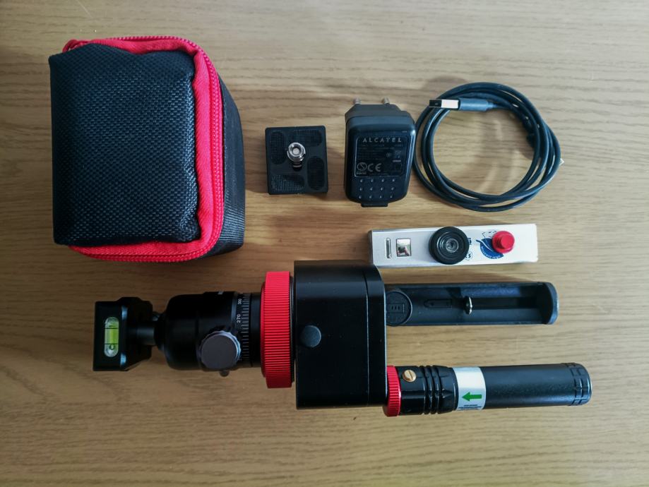 Prodajem MSM Nomad starter kit astrotracker za širokokutnu astrofotografiju..Tracker ima svega sat i pol rada i pod viralnom garancijom je (od toga 1h sam obavio test za pračenje i pokazuje izvrsnih 15 stupnjeva i napravio jednu testnu fotku s njime).Plačen 220e ali poklanjam uz njega USB punjač koji inače ne dolazi uz njega i poklanjam vanjsku bateriju s kablom (manjeg kapaciteta ali dovoljno da odradi jednu sesiju ako zaboravite napuniti tracker). Ima arca swiss prihvat i 1/4" i 3/8" navoj, dakle paše na sve moguće stative.U kompletu - tracker, original kuglasta glava ( 3,5 Kg nosivosti), polarni laser s punjačem baterije, torbica, punjači i kablovi, vanjska baterija. Samo osobna primopredaja, Zagreb. 091/ 9099 792, Željko.