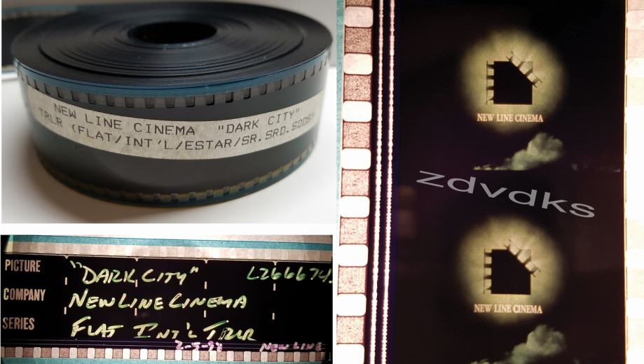 -reklama (ili najava ili foršpan ili trailer): Dark City 1998 na filmskoj traci u roli od 35 milimetara za kino projektor